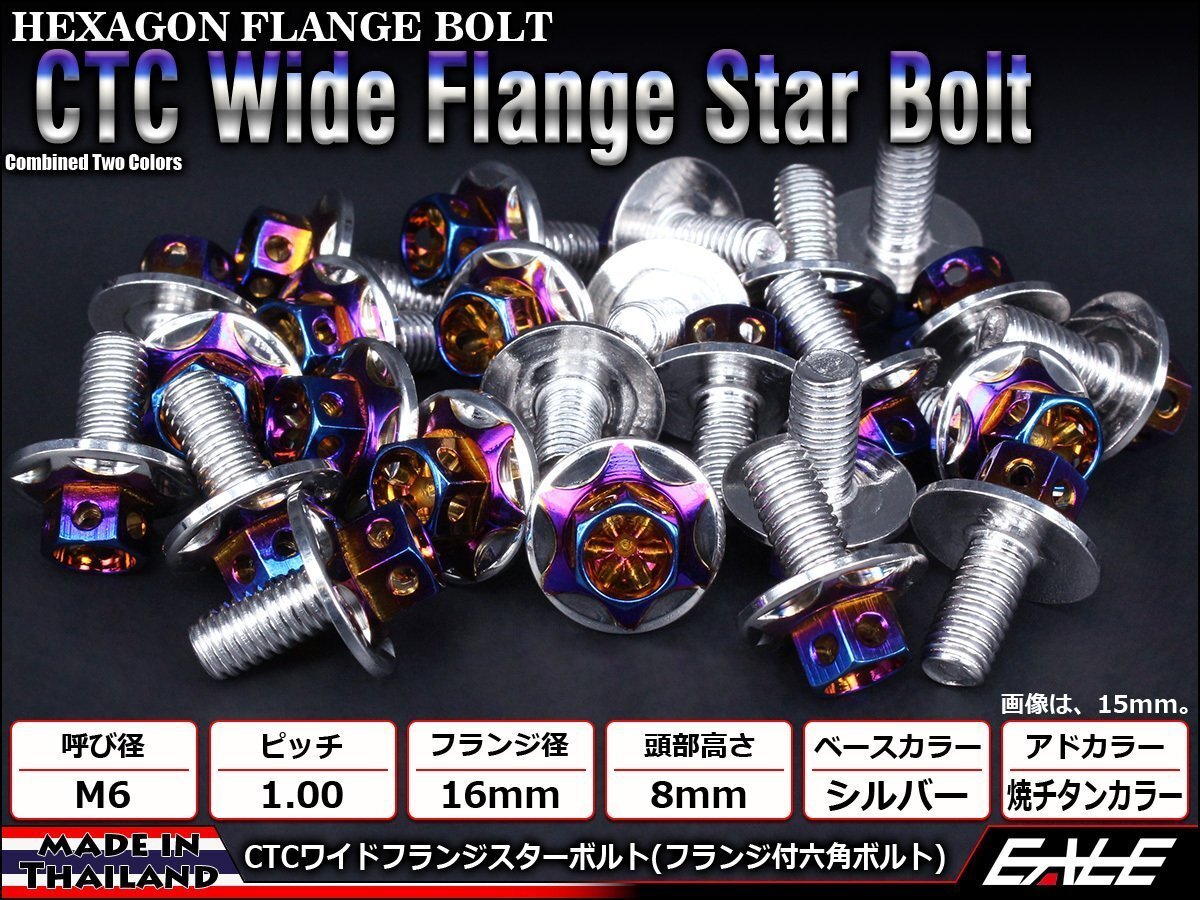 > M6×15mm 2色ワイドフランジスターボルト フランジ付き六角ボルト ステンレス削り出し シルバー&焼チタンカラーTB0997