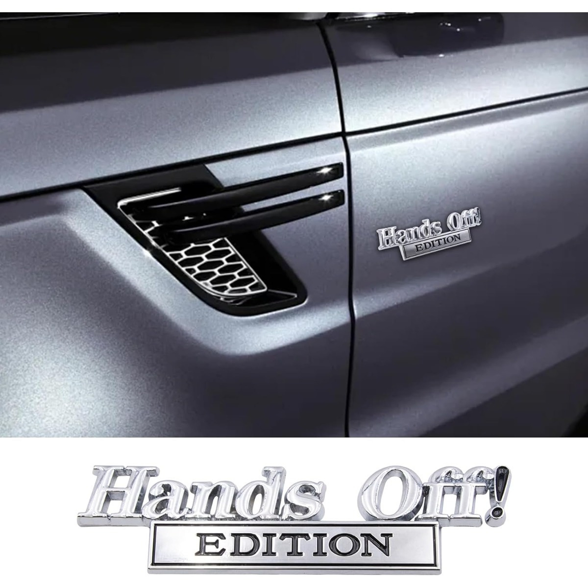 > エンブレム ハンズオフ Hands Off 車用 13cm シルバー ブラック 金属 プレート シール バイク 3D 立体 外装 デコ メタルステッカー t8353