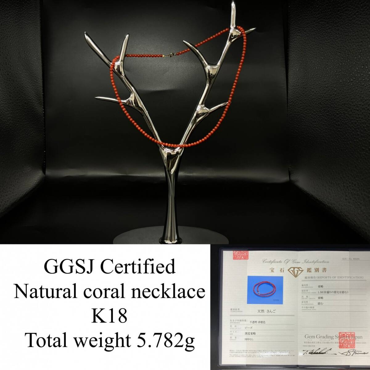 > 赤珊瑚 ネックレス (さんご サンゴ) 宝石鑑別書付き K18 総重量5.782g ネックレス全長約41.5cm 6580YY