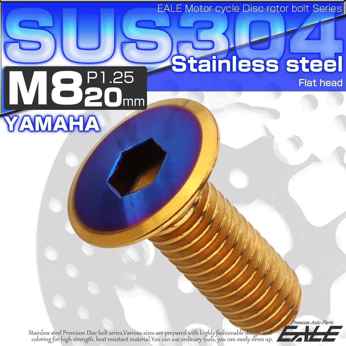 - ヤマハ用 ブレーキ ディスク ローター ボルト M8×20mm P=1.25 SUS304 ステンレス フラットヘッド ゴールド/ブルー TD0324