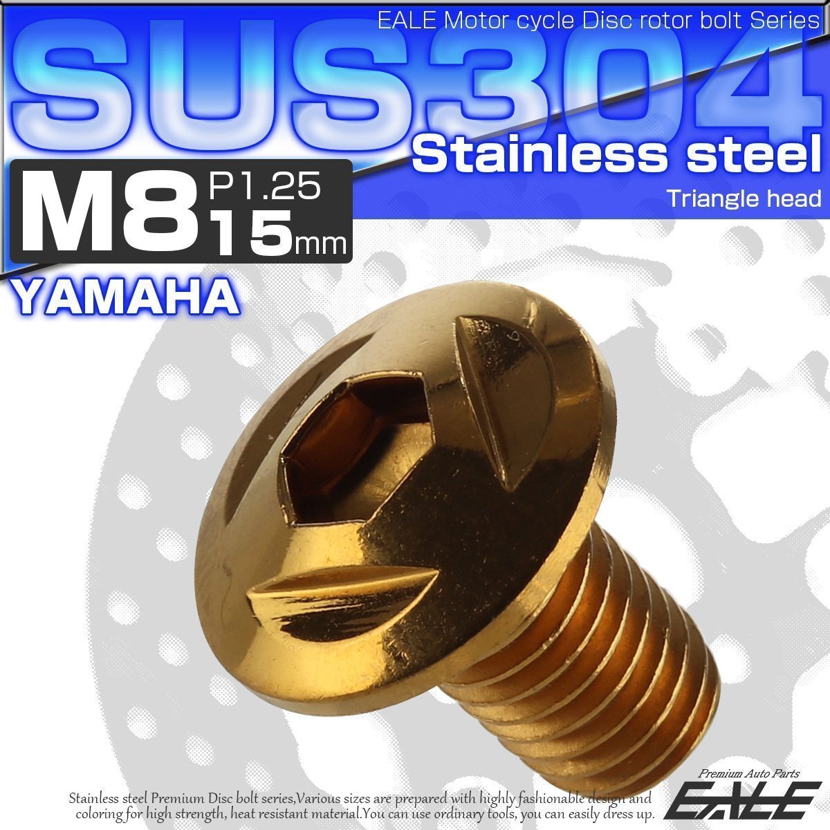- ヤマハ用 M8×15mm P=1.25 ブレーキ ディスク ローター ボルト SUS304 ステンレス トライアングルヘッド ゴールド TD0093