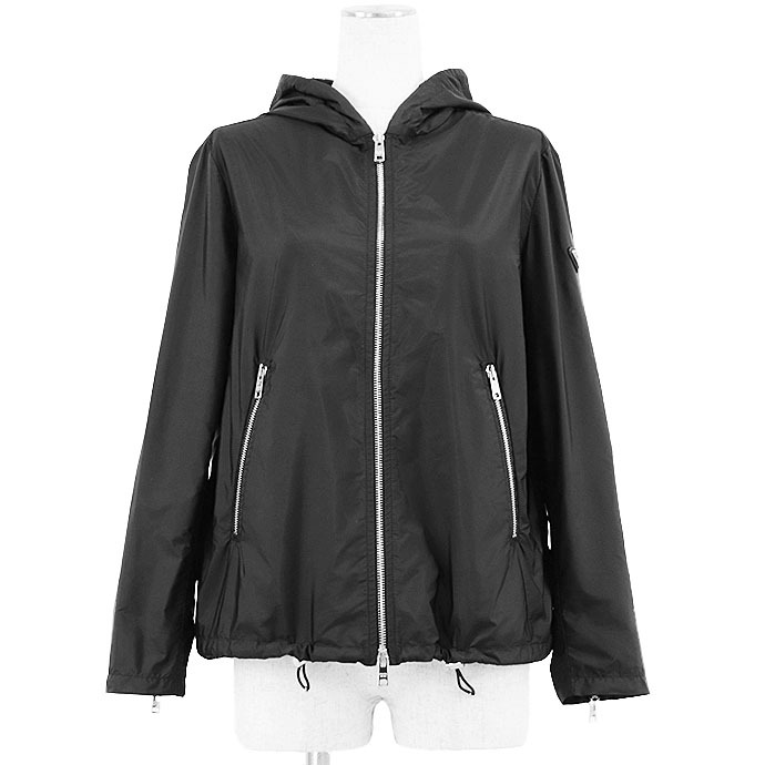 - 【美品】PRADA プラダ ジャケット フーディー 2018年製 ロゴ トライアングルプレート ポリアミド100% 軽量 レディース 40 黒 ベトナム製