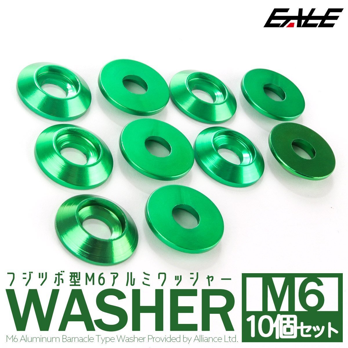 > M6 皿ボルト用 座面枠付きワッシャー フジツボ型ワッシャー ボルトリング アルミ製 アルマイトグリーン 10個セット TH0706-GR