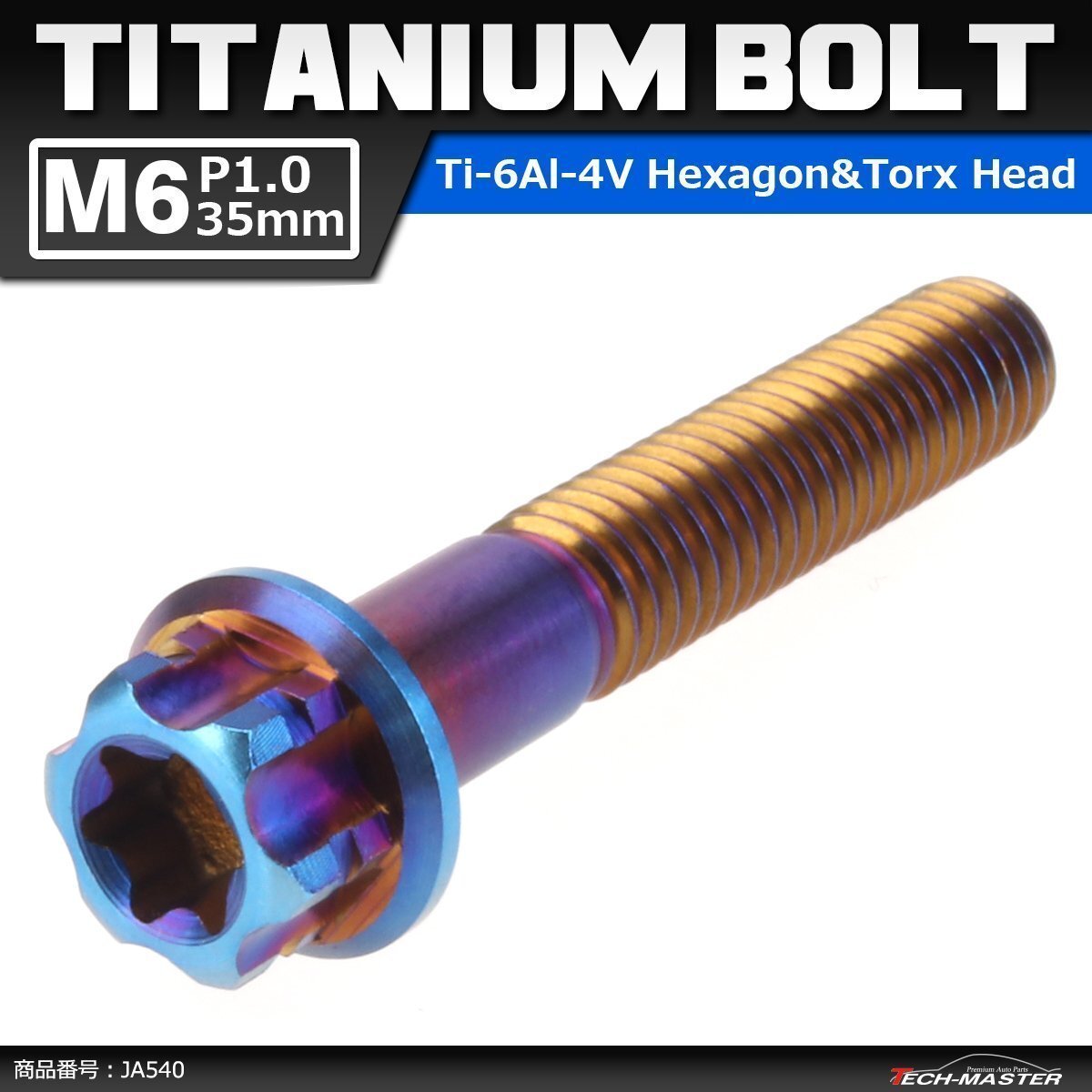 - M6×35mm P1.0 64チタン合金 ヘキサゴン トルクスヘッド キャップボルト フランジ付き 焼きチタンカラー 車/バイク/自転車 1個 JA540