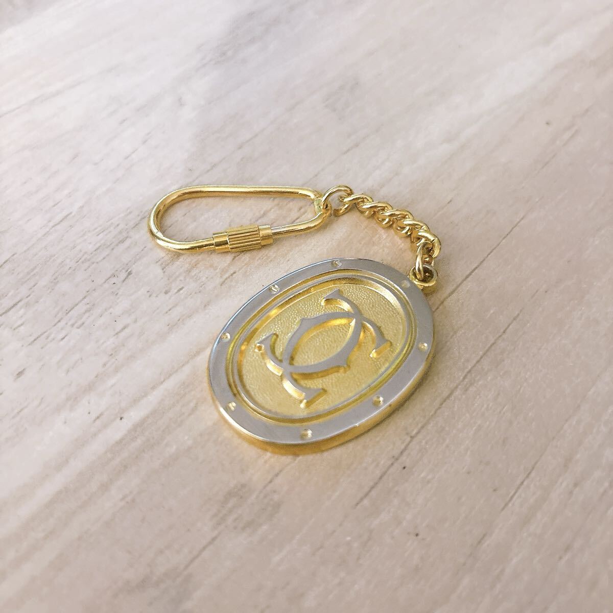 - 美品 Cartier カルティエ ロゴプレート キーホルダー ゴールドカラー FRANCE刻印 アクセサリー 金色 ゴールド チャーム ダブルC ロゴ