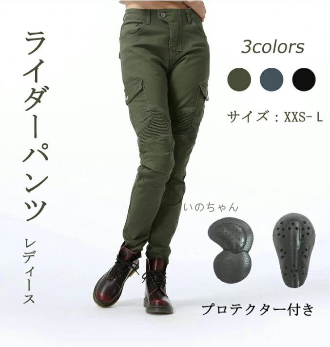 > バイクウェア レディース ライダーパンツ 女性用 プロテクター付 ジーンズ オートバイ ニーパッド 転倒防護 膝当て 耐衝撃 春夏秋XXS~L