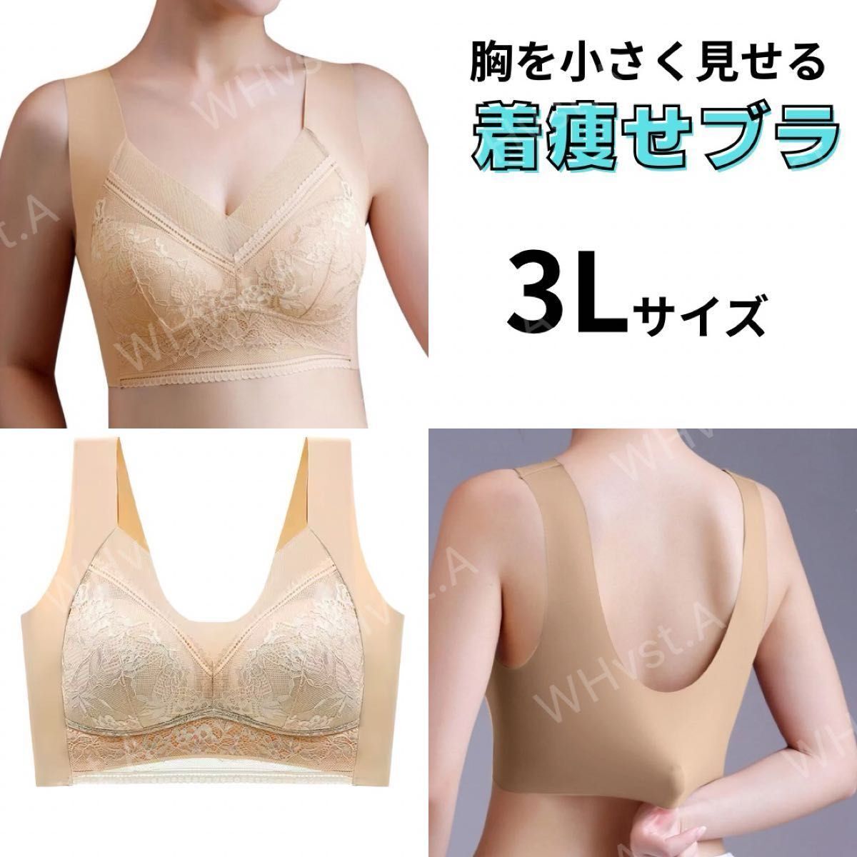 - 3L ベージュ 胸を小さく見せるブラ シームレス 着痩せ スマートブラ ノンワイヤー 美胸