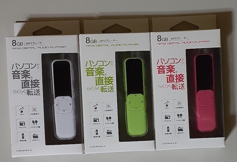 > 6594 未使用未開封 3色セット MP3AP-WHホワイト MP3GL-GRグリーン MP3GL-PKピンク FMラジオ付ポータブルオーディオプレーヤー 8GB GRANPLE