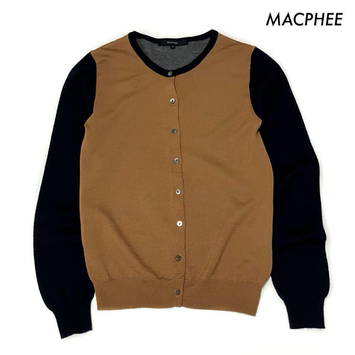 - 【送料無料】MACPHEE マカフィー★長袖カーディガン クルーネック 袖切替 キャメル