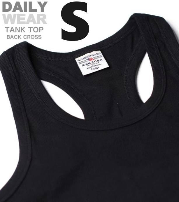 > AVIREX リブ タンクトップ BACK CROSS ブラック Sサイズ / 《DAILY》RIB TANK TOP バッククロス 黒 デイリーウェア アビレックス