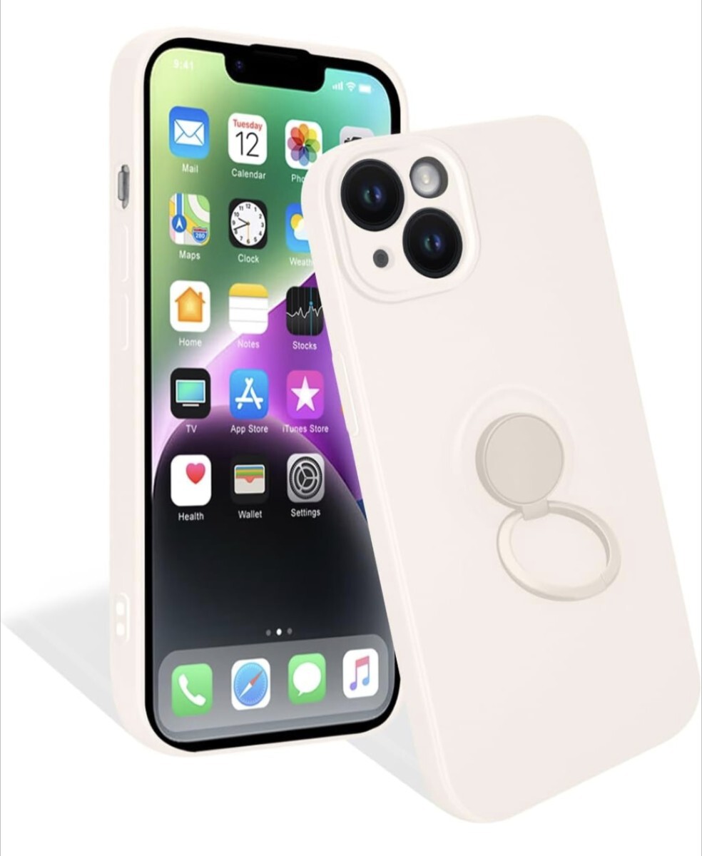 > iPhone 14 Plus ケース シリコン 耐衝撃 アイフォン 14 プラス リング カバー スマホケース Tスタンド機能 車載スタンド対応 白 ホワイト