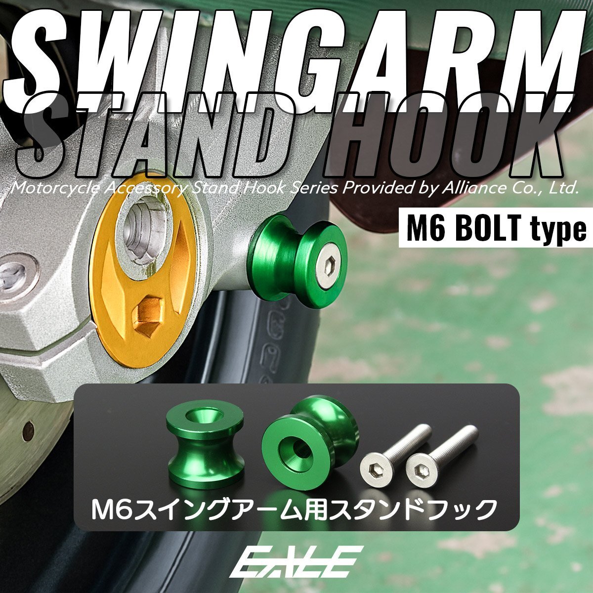 - リア スタンドフック6mm M6 アルミ削り出し レーシング/メンテナンススタンド スイングアーム取付 2個セット グリーン S-306-GR