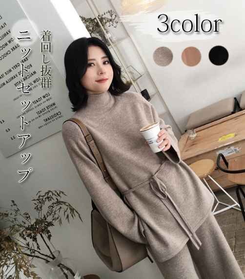 - 新作二点セット レディース ニット セットアップ 着やせ スリム 長袖 トップスきれいめ ニットパンツ S キャメル