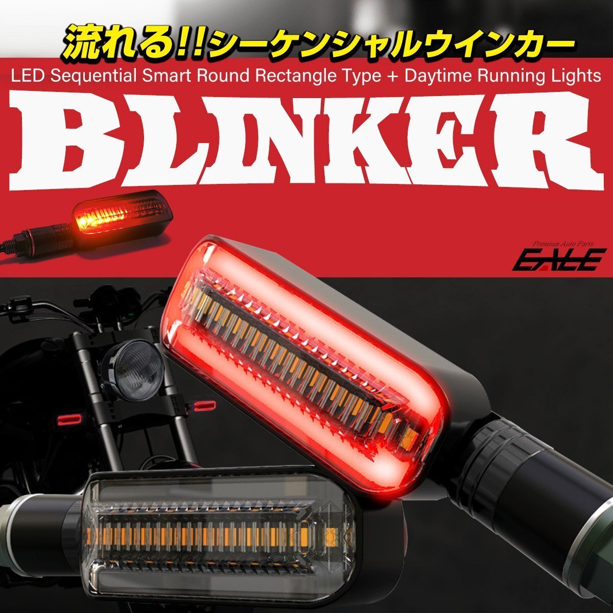 - バイク 汎用 LED シーケンシャル ウインカー 本体色 ブラック マーカーランプ色 レッド F-295-BKR