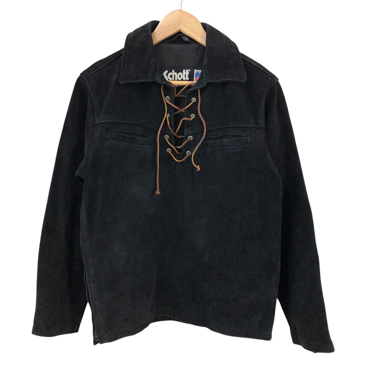 > 9H824-75 USA製 本革 Schott N.Y.C. ショット レザー レースアップ デザイン プルオーバー トップス 黒系 編み上げ アメリカ製 メンズ S