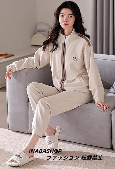 - 春秋 ジップアップパーカー セットアップ レディース ジャージ 上下2点セット 綿 ジョガーパンツ ルームウェア カジュアル ゆったり 韓国風