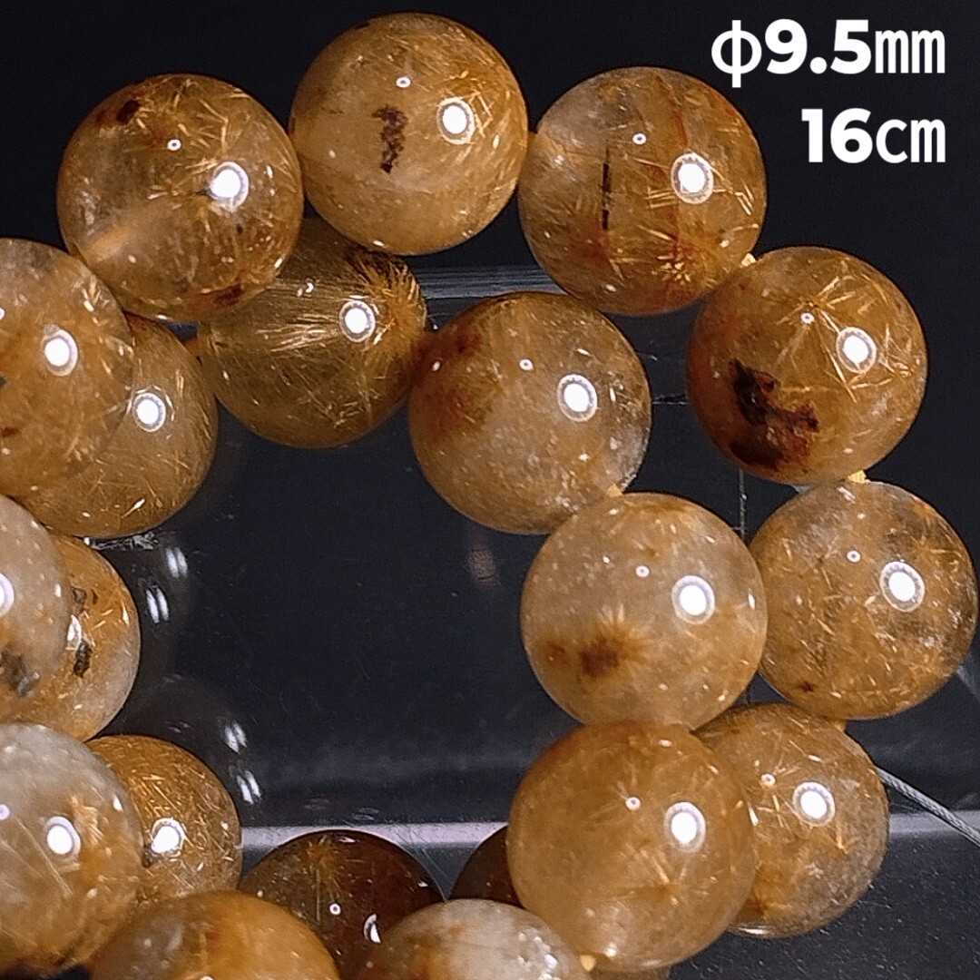- ①フラワールチルクォーツ 太陽ルチル ブレスレット 9.5㎜ ゴールドルチルクォーツ 16㎝ タイチンルチルクォーツ