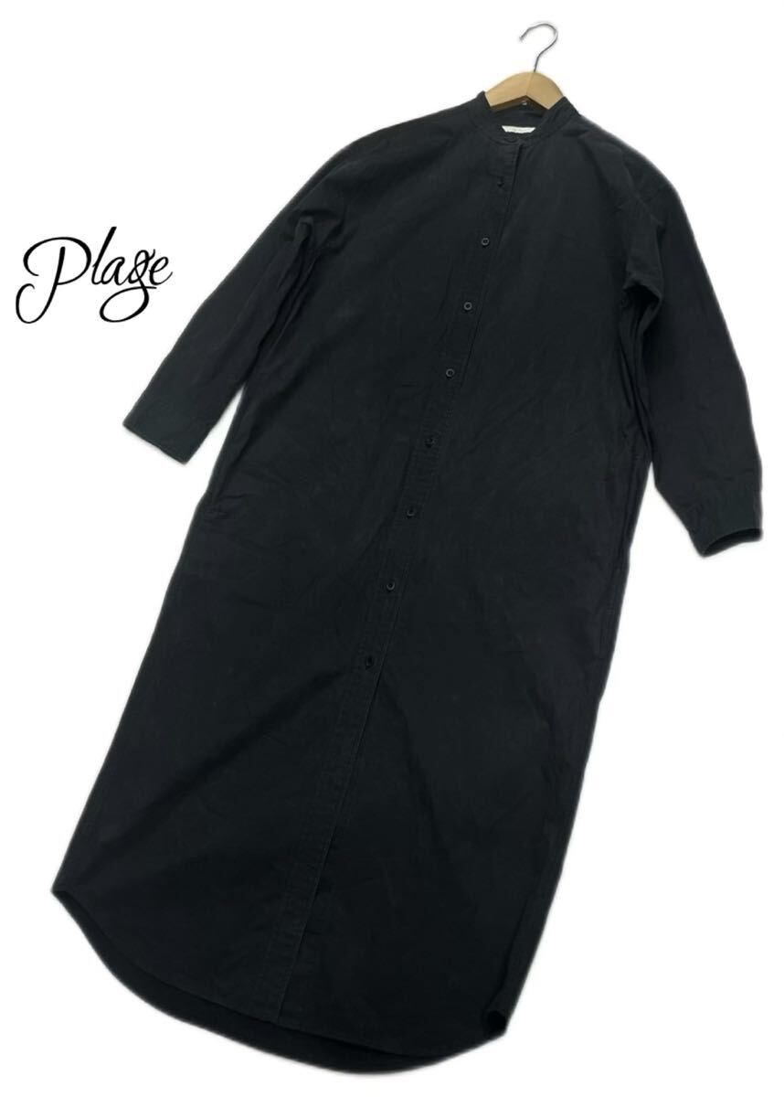 - Plage★プラージュ★日本製 17-040-922-1020-3-0 綿100% 長袖 シャツ ロングワンピース/ 黒