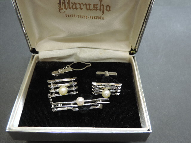 - ★パール ネクタイピン・カフスセット★ 刻印:SILVER 中古品