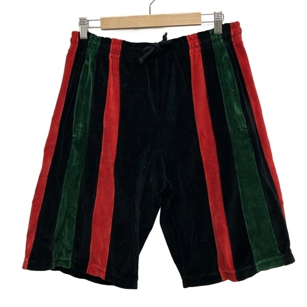 > グッチ GUCCI ハーフパンツ サイズM 587466 XJBPG - 黒×レッド×グリーン メンズ ベロア/シェリー/Mサイズ ボトムス