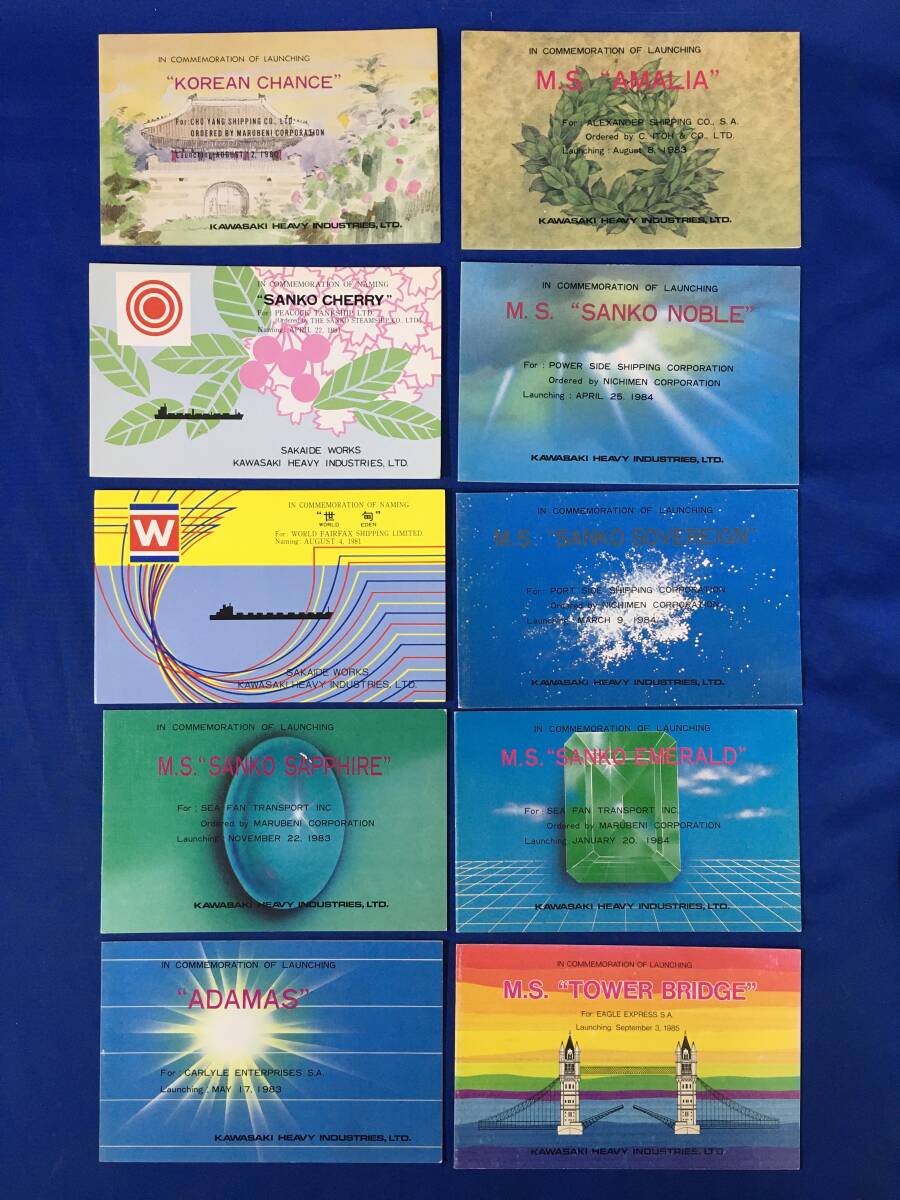 - AK663イ●昭和50年代●海外向け【外国船舶進水記念:絵葉書10枚】丸紅/日綿注文他/三光汽船系/SANKO NOBLE/貨物船他/1980-85/川崎造船所
