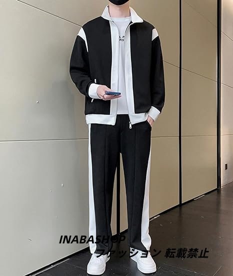 - 春秋 ブルゾン ジャージ 上下セット メンズ 大きいサイズ スウェット セットアップ ゆったり プルオーバー セット 韓国 カジュアルおしやれ
