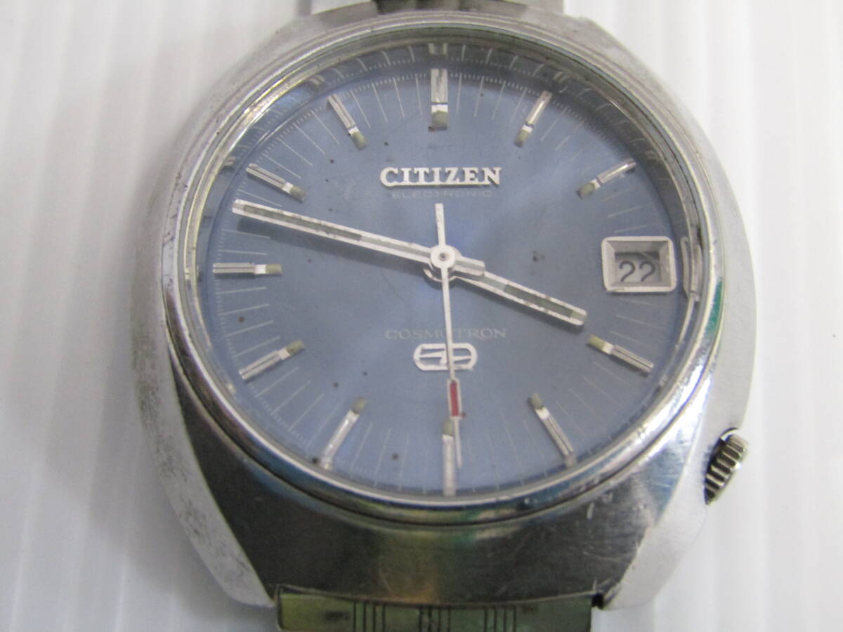 - T0647 シチズン コスモトロン 4-4800341Y 電磁テンプ式 デイト ブルー文字盤 メンズ 腕時計 動作未確認