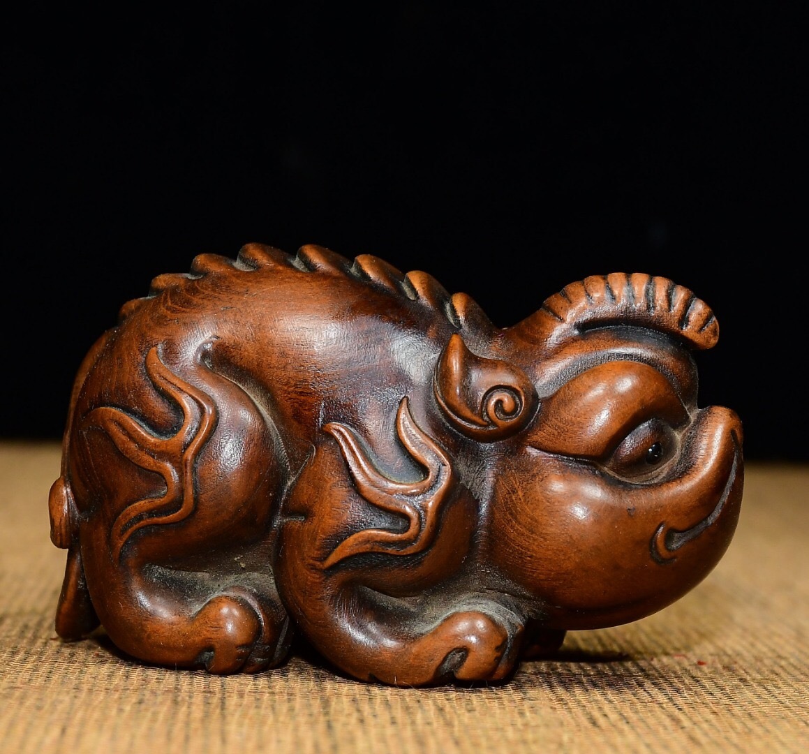 - 蔵友旧蔵出 黄楊木製 細密彫 犀牛 文房具 供養品 置物擺件 稀少珍藏品 古賞物 中国古玩 中国古美術品