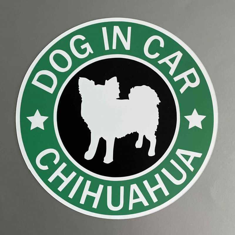 - 犬(チワワ_ロングコート )スタバ風 マグネット ステッカー 防水 車用【匿名配送】