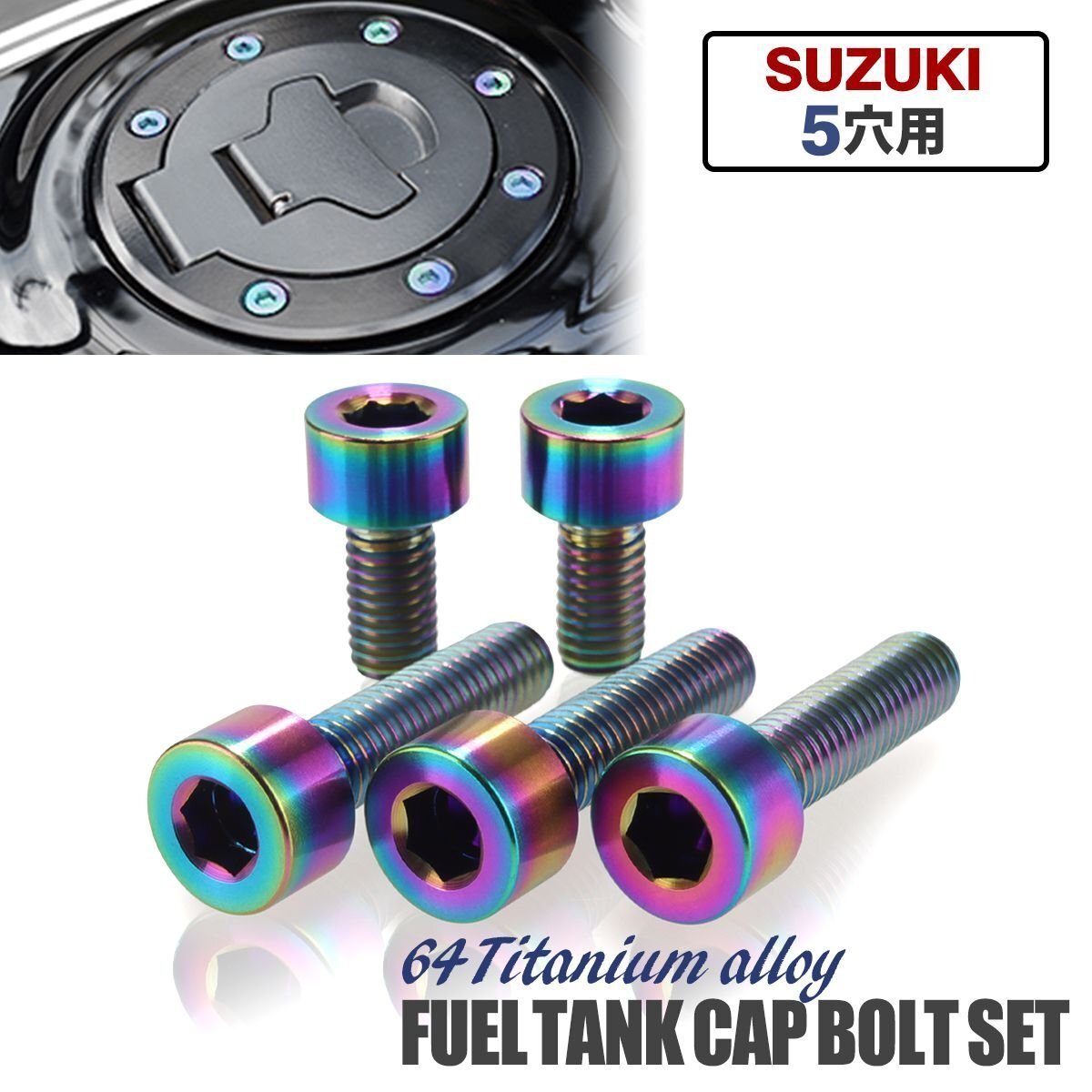 > タンクキャップ チタンボルト バイク スズキ 5穴用 焼きチタンカラー レインボー 5本セット JA243