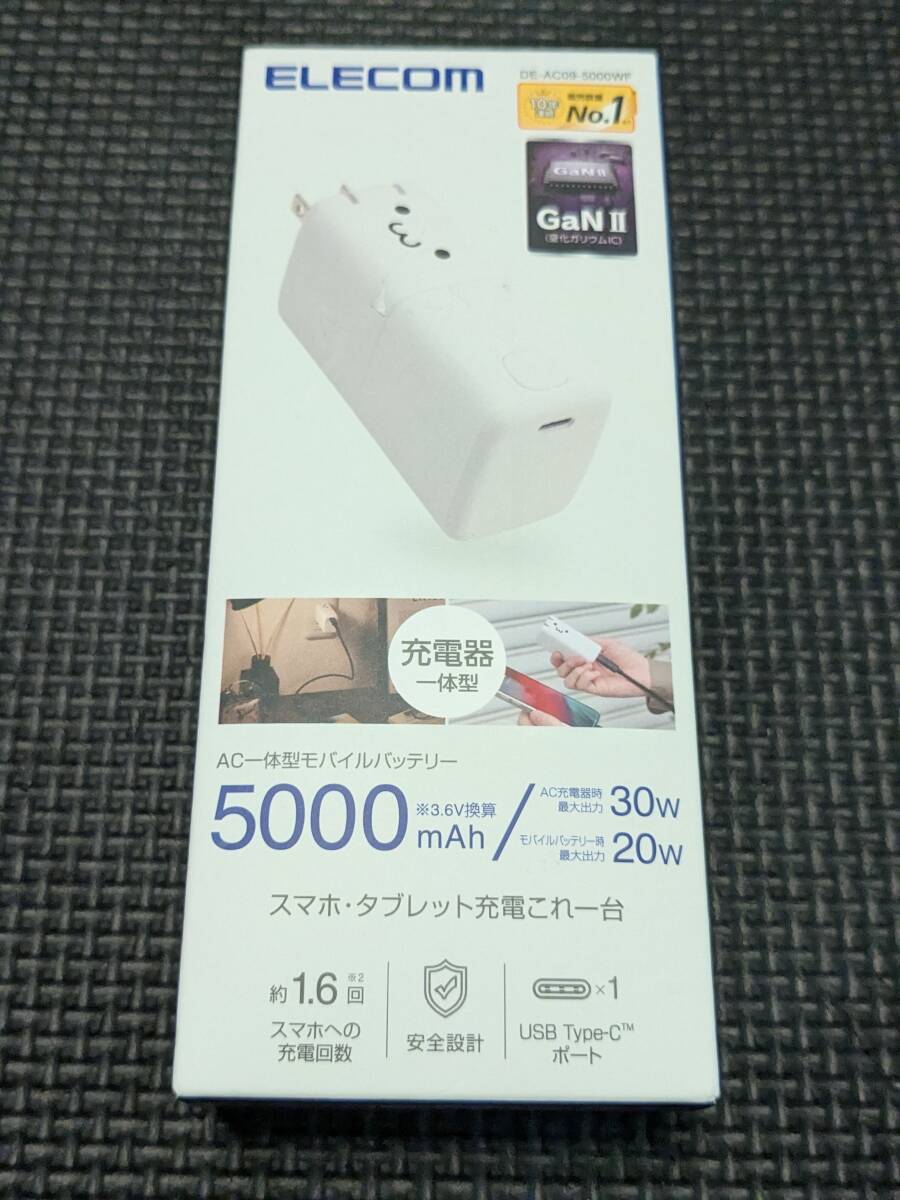 > ◎0709u0524 エレコム モバイルバッテリー 5000mAh AC時30W 20W コンセント一体型 Type-C 1ポート しろちゃん DE-AC09-5000WF