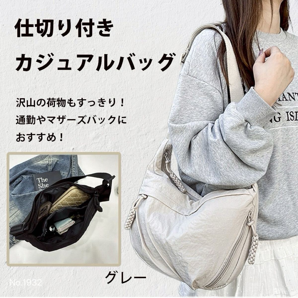 - 新品!大容量 カジュアルバッグ グレー 仕切り付き シンプルバック