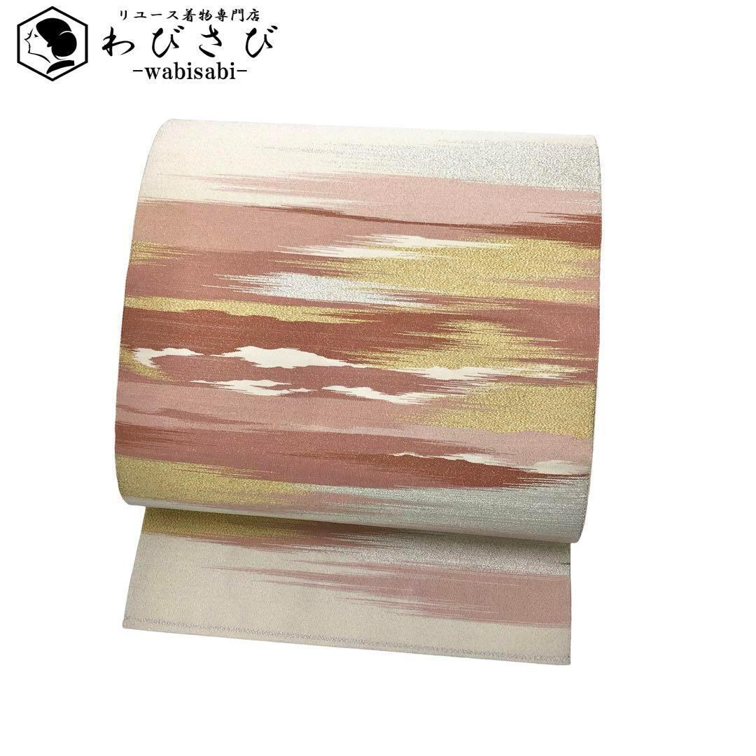 - 袋帯 綴れ 上品な霞模様 金銀糸 真珠色 O-3334 着物 きもの kimono 和服 和装 中古 リサイクル着物 【送料無料】