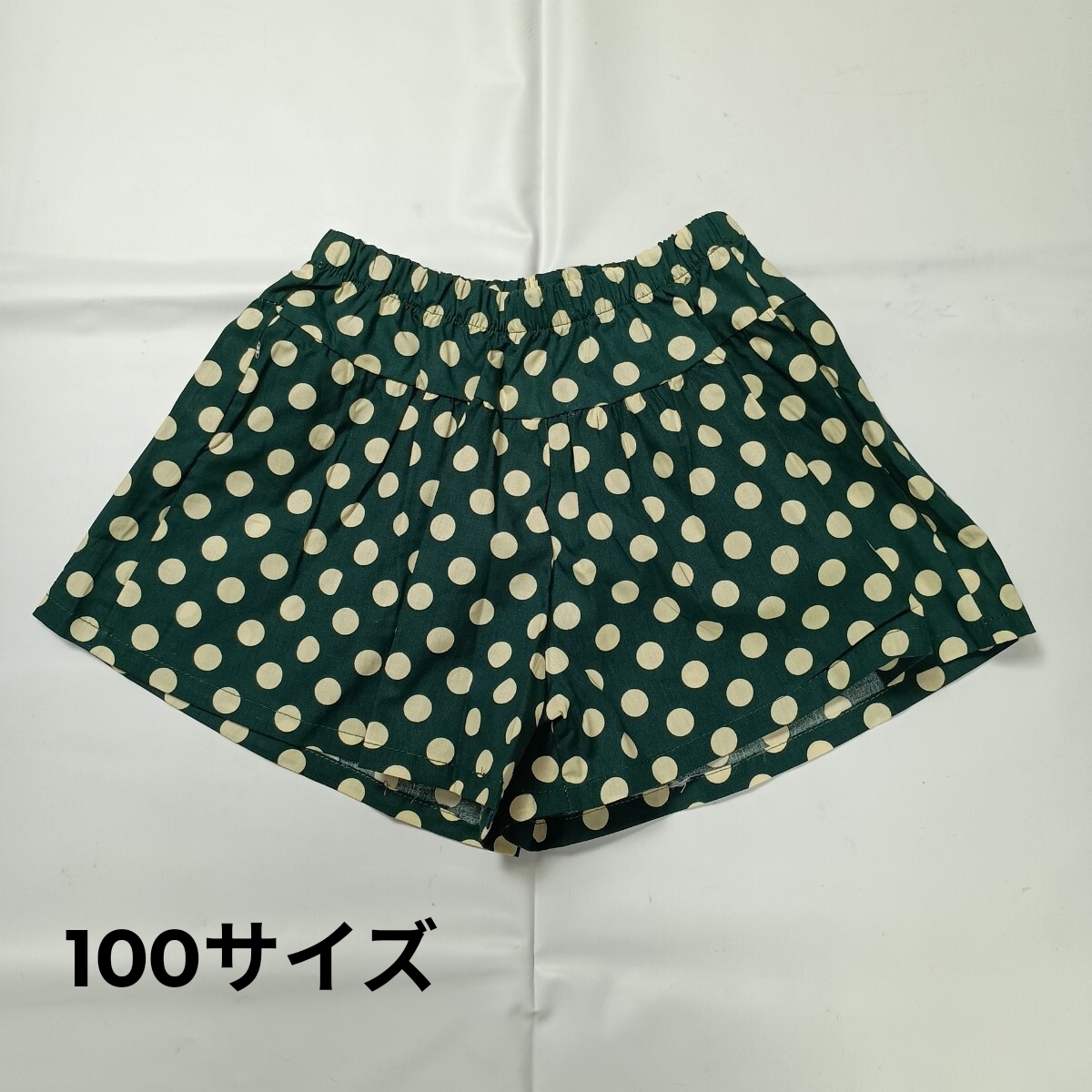 - 【未使用 100 幼児服 子供服 キュロット グリーン 緑 ドット 水玉 夏服 シンプル ウエスト 総ゴム