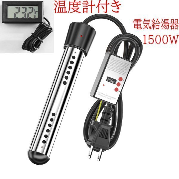 - 投げ込み ヒーター 1500W 温度計付き 予約時間 タイマー 携帯 110V 湯沸かし器 電気 給湯器 風呂 バケツ ステンレス アウトドア 温水プール