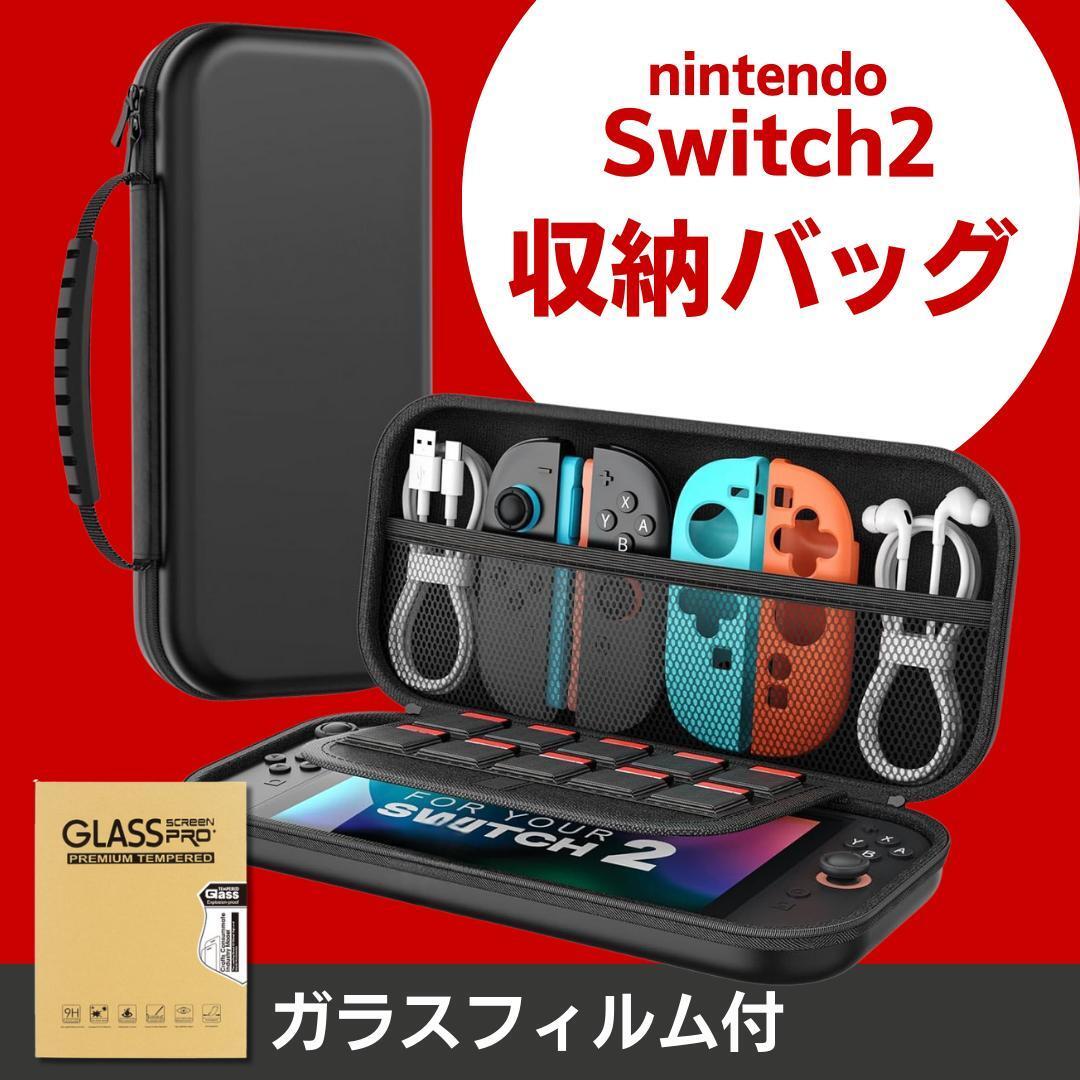 > Nintendo Switch 2 スイッチ2 ケース 収納 バッグ フィルム セット 黒 キャリー 保護 耐衝撃 防水 ゲームカード10枚 小物収納可 持ち運び