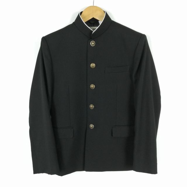 - 学生服 学ラン 155A 男子 上着 ウール混 ラウンドカラー サージ 黒 中古 ランクB a3 JJ5381