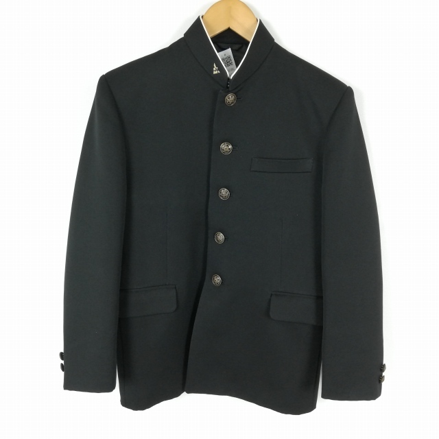 - 学生服 学ラン 155A 男子 上着 学校指定制服 ラウンドカラー カシドス 黒 中古 ランクC a3 JJ6186