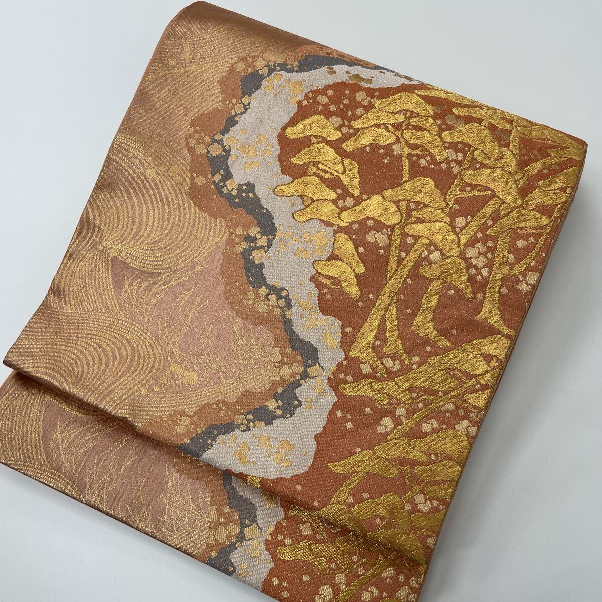 - 袋帯 流水 松に金彩 金上品な加工 正絹 W-4144
