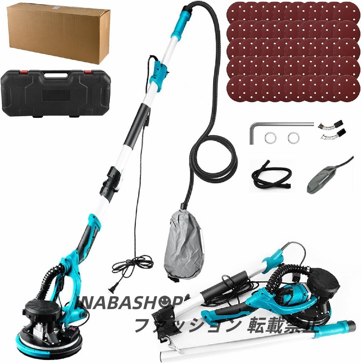 - 電気ドライウォールサンダー 折りたたみ式 110V 1250W 電気乾式壁サンダー 電動サンダー 800-1800RPM6段階変速 LEDライト 自動掃除機付き