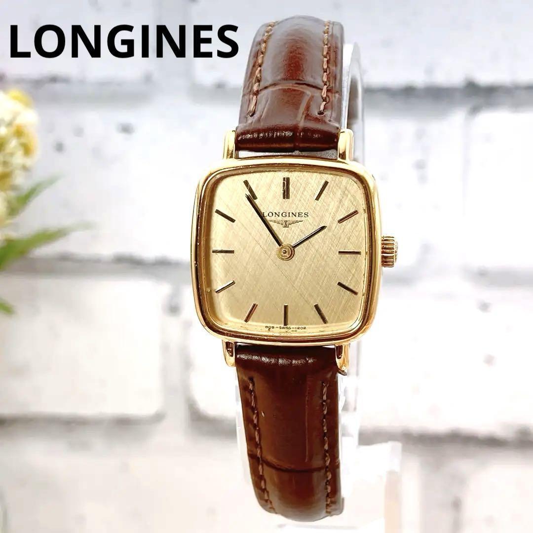 - 【稼動品/新品ベルト】LONGINES 手巻き時計 ロンジン ゴールド/1980 社外ベルト VINTAGE ヴィンテージ スクエア 金色
