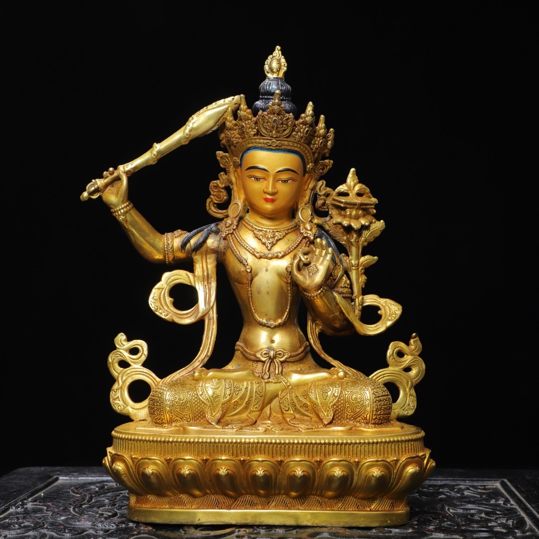 - 精品収蔵 古銅塗金 描彩 文殊仏像 造像 佛 仏教 宗教密教 招財 鎮宅 家蔵珍品 時代物 古董品 骨董 旧家蔵出し 唐物 中国古玩 古美術品