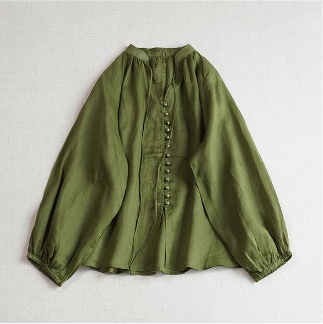 - 新品ワイシャツ チュニック ゆったり フリーサイズ ナチュラル 苧麻100% 肌触りいい グリーン