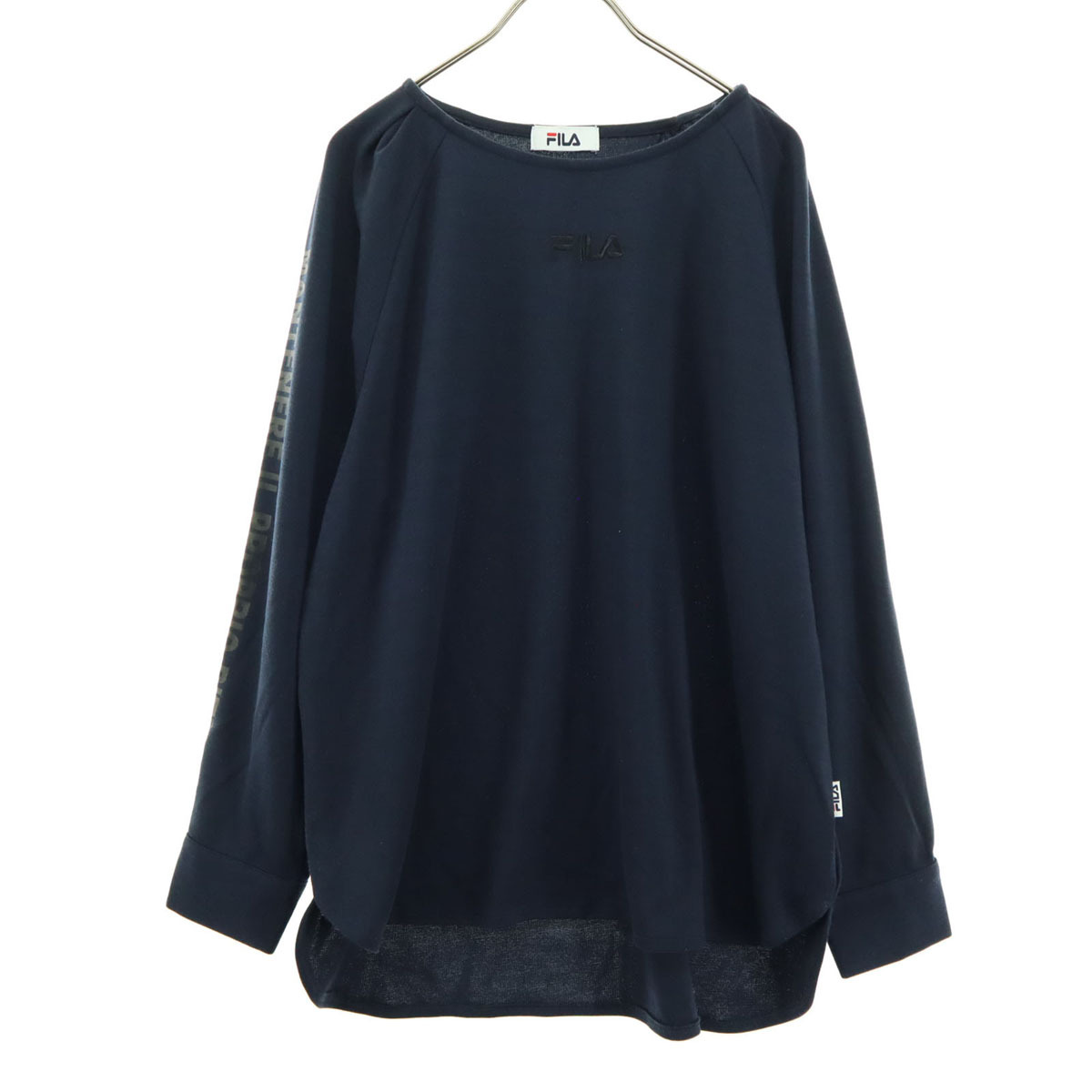 美品 FILA フィラ ワンポイントロゴ 長袖 トレーナー L ネイビー レディース