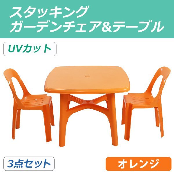 - 送料無料 ガーデンチェア ガーデンテーブル 3点セット UVカット オレンジ ガーデンセット ポリプロピレン製 ガーデンテーブル&チェアー2脚