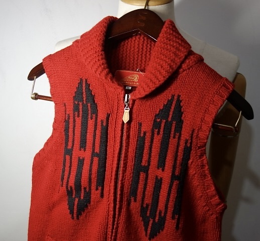 > TK インディアンモーターサイクル INDIAN MOTORCYCLE ネイティブ柄 カウチンベスト 赤黒 ニット セーター インディアン
