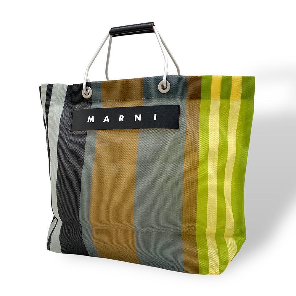 - 美品 MARNI マルニ フラワーカフェ トートバッグ マーケット ストライプ