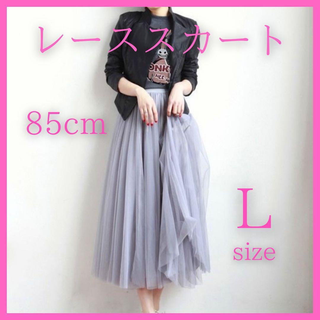 - 【最終値下げ】L チュールスカート レース シフォン 可愛い ロング エレガント 大人 秋 冬
