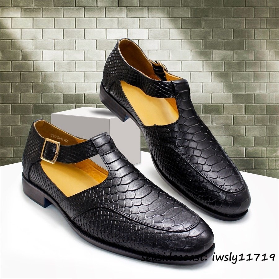 > 極希少◆新品 サンダル メンズ 鰐柄 上質牛革 職人手塗り上げ ビジネスシューズ 本革レザーシューズ メッシュ 通気性 革靴 ブラック 24.5cm
