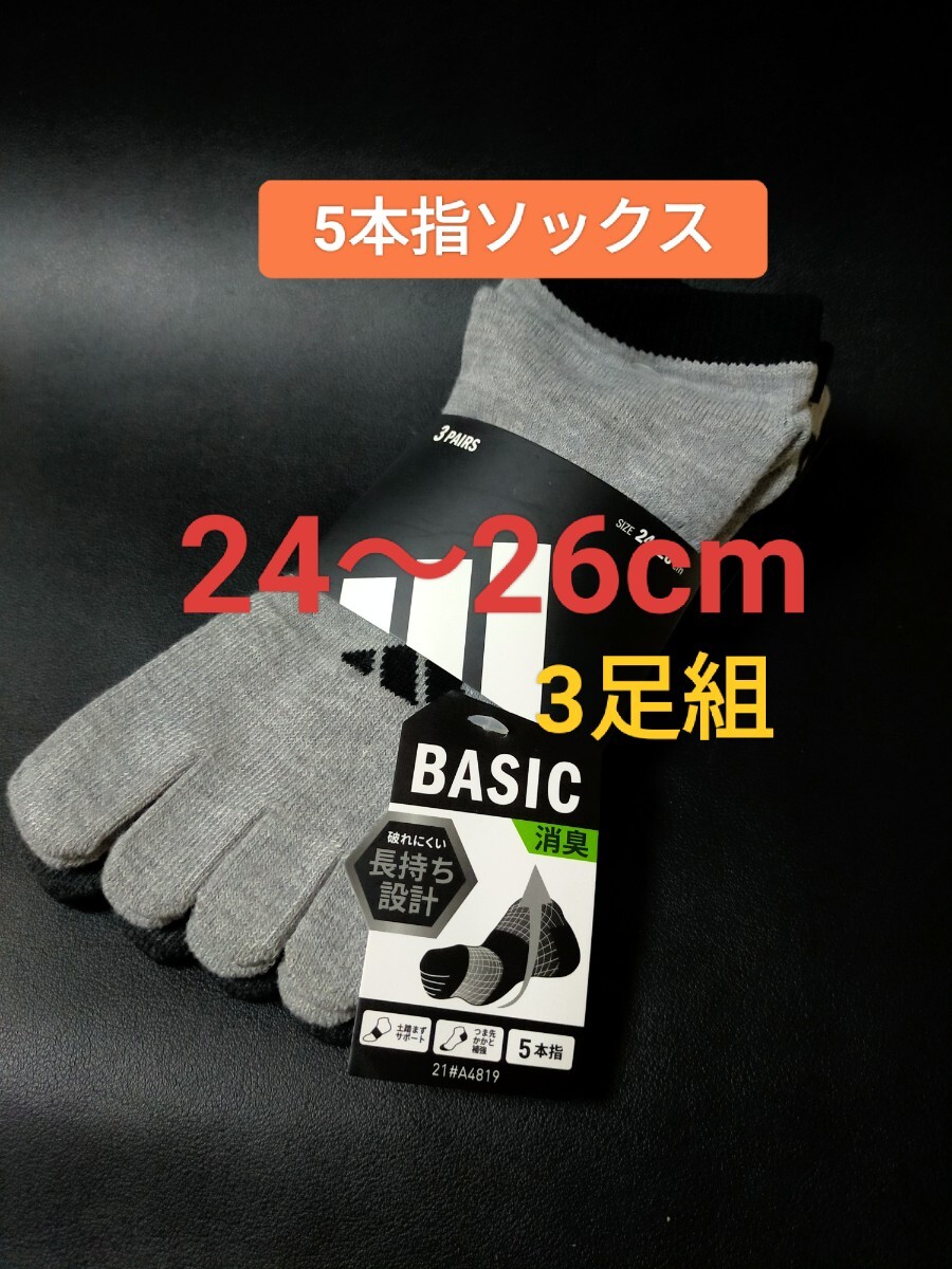 > 24cm~26cm★送料無料⑧即決!3足組【adidas】アディダス(消臭効果) 五本指ソックス メンズ 男性用 大人用 靴下 5本指ソックス 紳士用